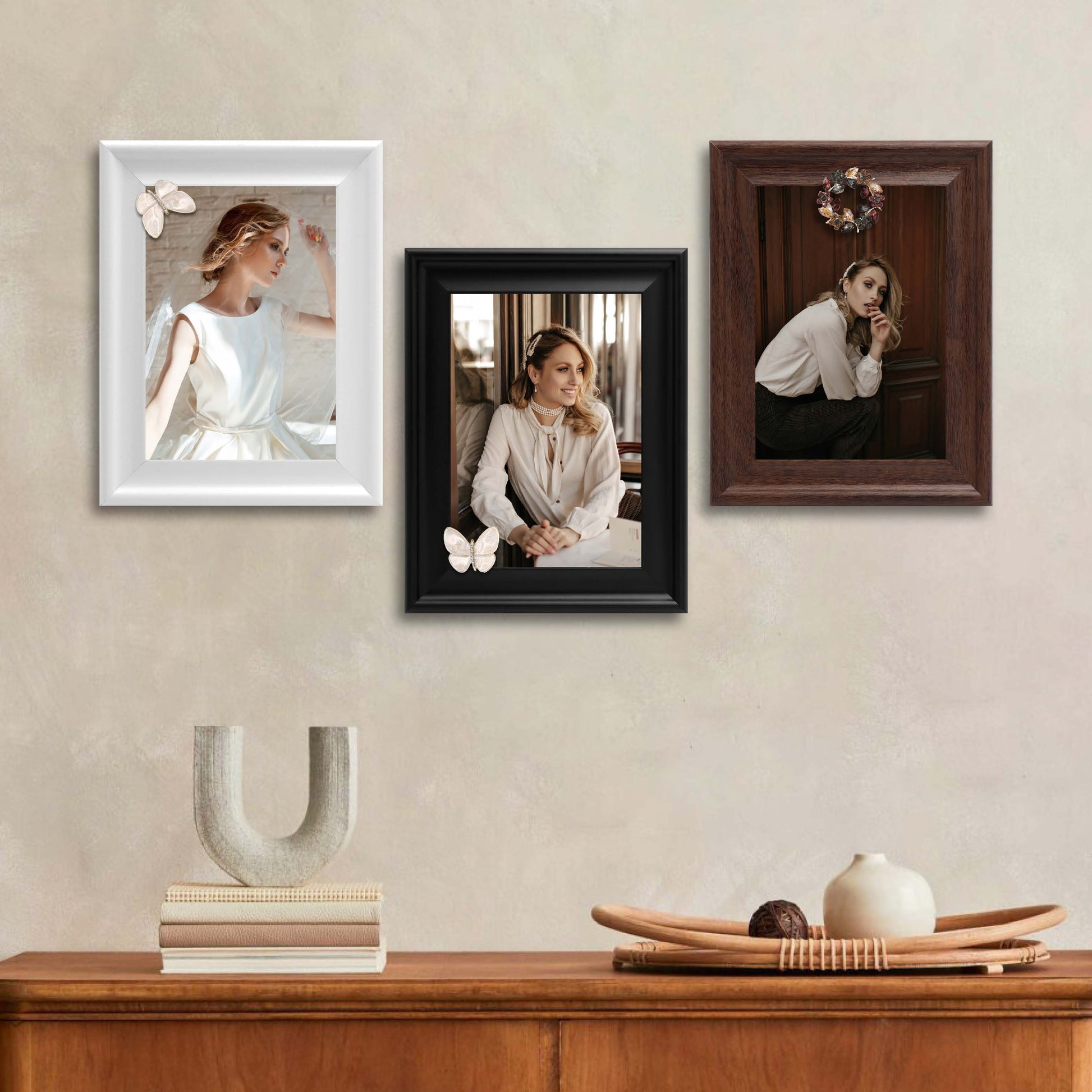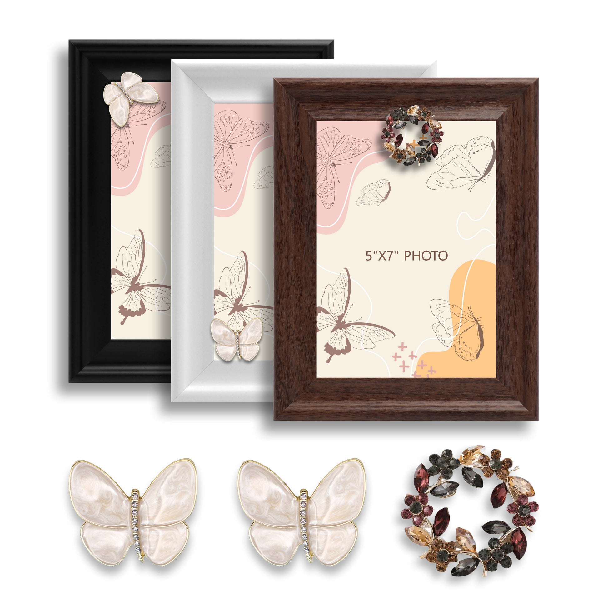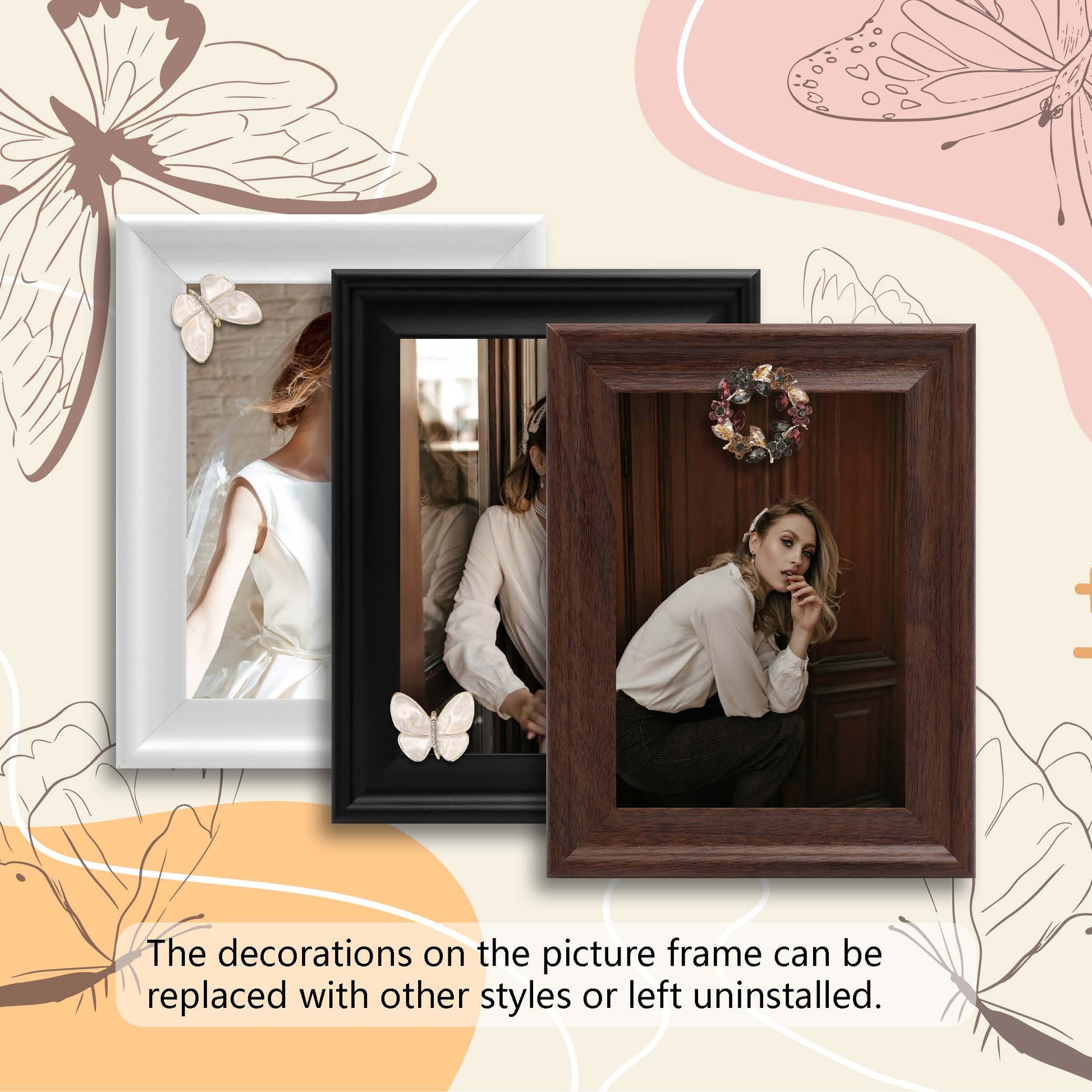 Dotride 5x7 Picture Frames with Decorations 3 Pack, Photo Frame with Detachable Butterflies and Wreaths Ornaments for Wall and Tabletop Display, Wooden Phoframe with Clear Plexiglass, Black White & Brown