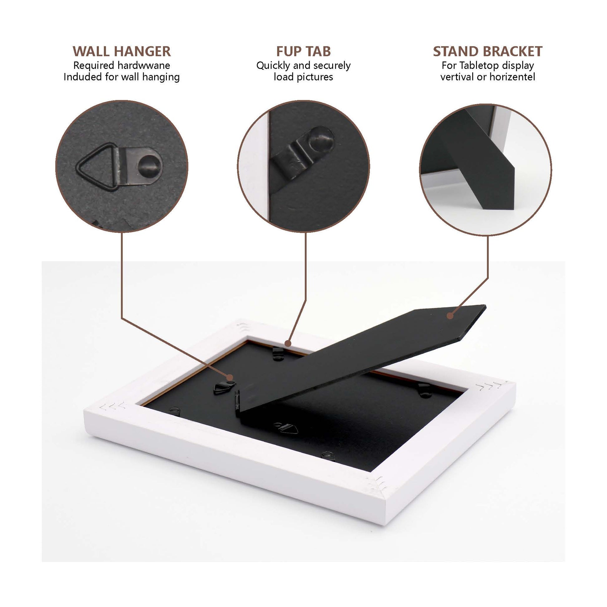 Versatile display options: The frames come with a back support that allows them to be displayed in both portrait and landscape orientations. They also feature two hanging points that allow them to be hung on the wall in either orientation.