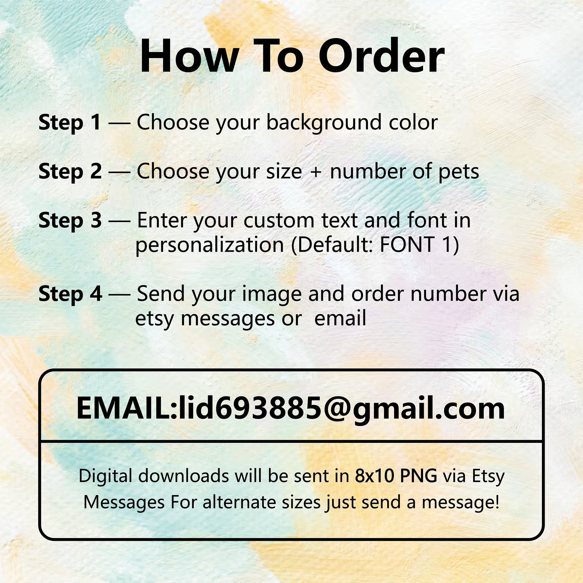 - Receive a PNG file of your pet portrait via Etsy messages or email.