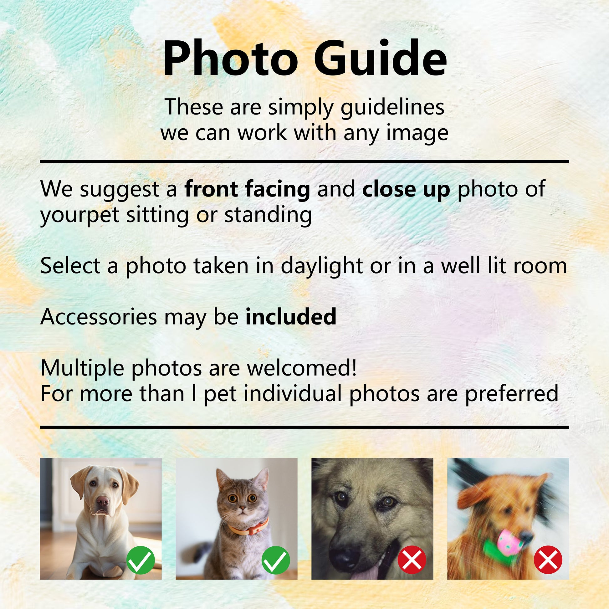 4. Send us your pet's photo via Etsy messages or email at lid693885@gmail.com, stating your Etsy Order Number. Refer to our photo guidelines to ensure the best possible quality print.